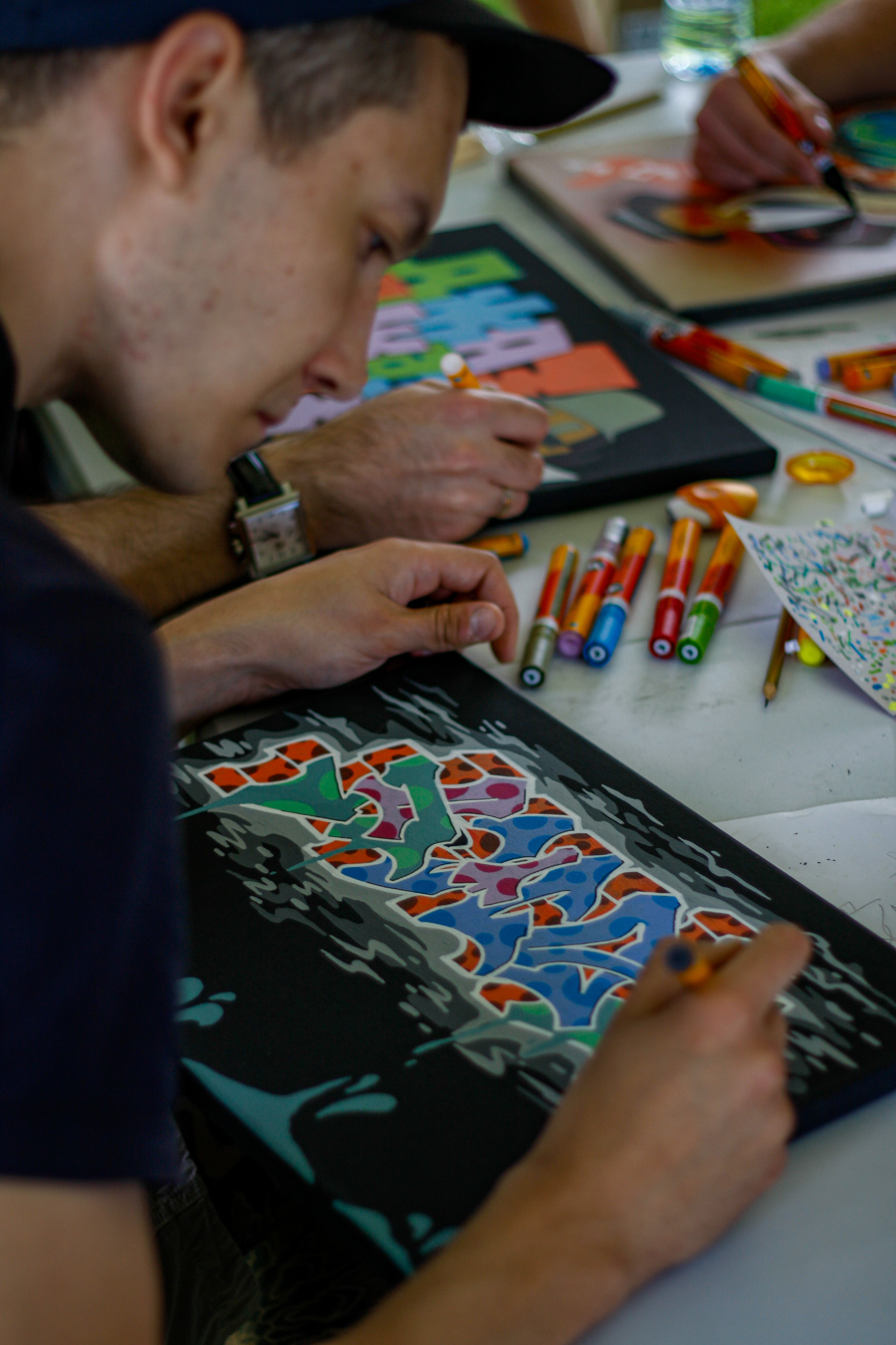 В нашем, совместном с Arton, корнере прошли: граффити контест, мастер-класс граффити для всех желающих, скетч-баттл акриловыми маркерами Molotow и мастер-класс по скетчингу.