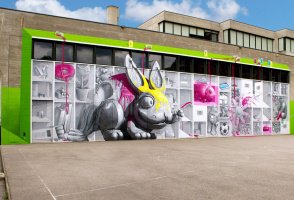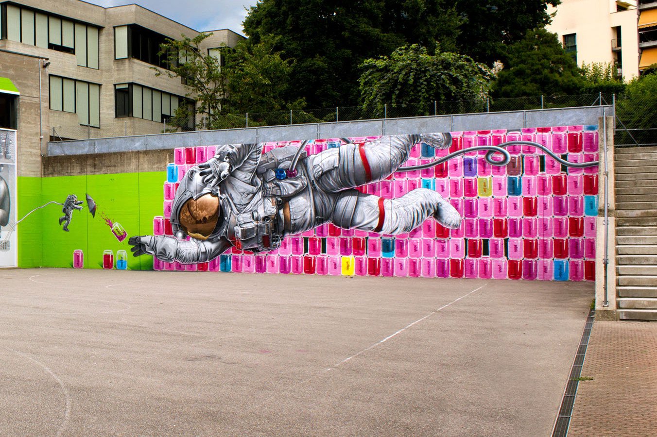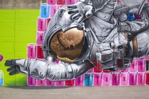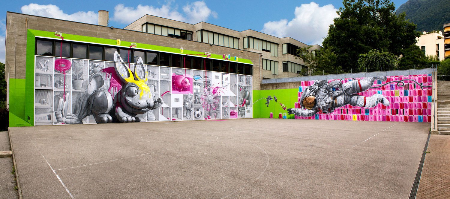 Хотим познакомить Вас с коллективом NEVER CREW и их новой работой в 240 квадратных метров под названием “Magenta – The never-ending game between the Astronaut and the Plastiline Rabbit”