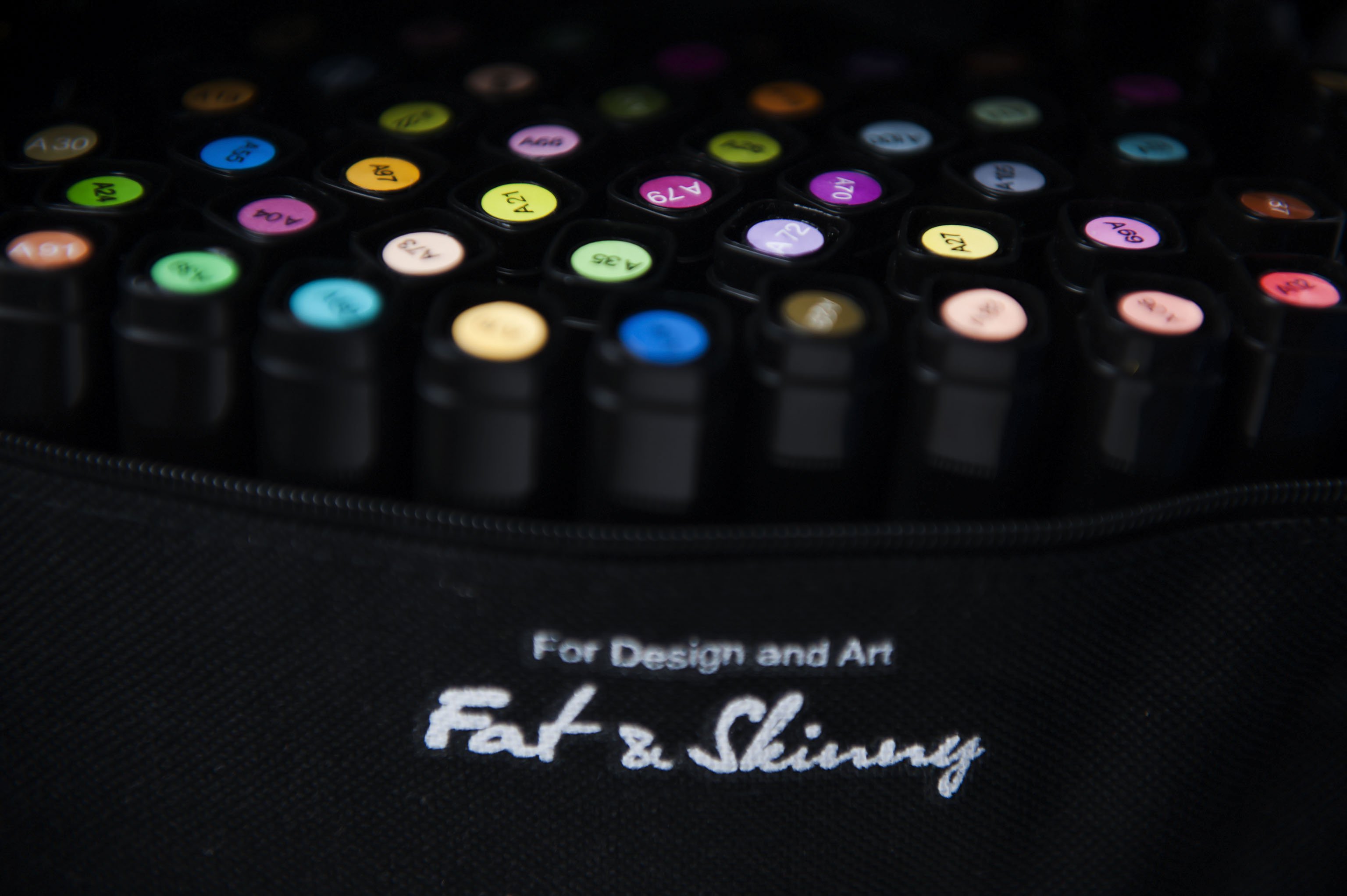 Удобство. Упаковка маркеров Fat&Skinny не пластиковая невзрачная коробочка, а удобные тканевые чехлы черного цвета на молнии и с ручкой.