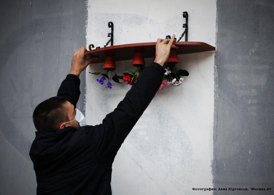 ковровую дорожку, навесив подоконники с цветочными горшками, художник