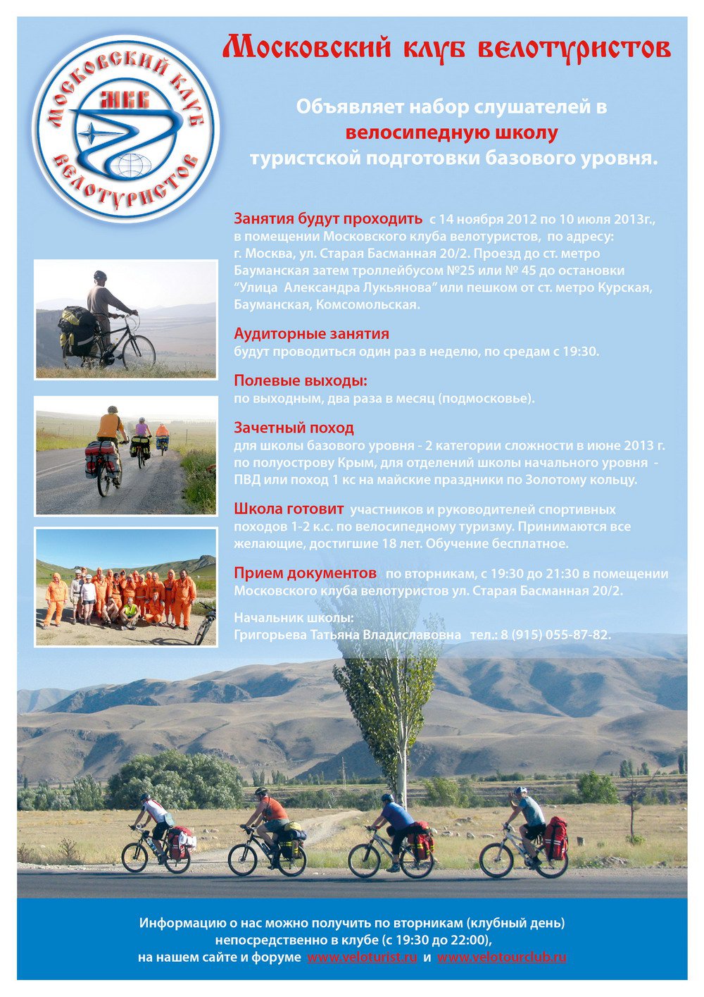 Наши друзья, Московский клуб велотуристов объявляет набор слушателей в велосипедную школу.