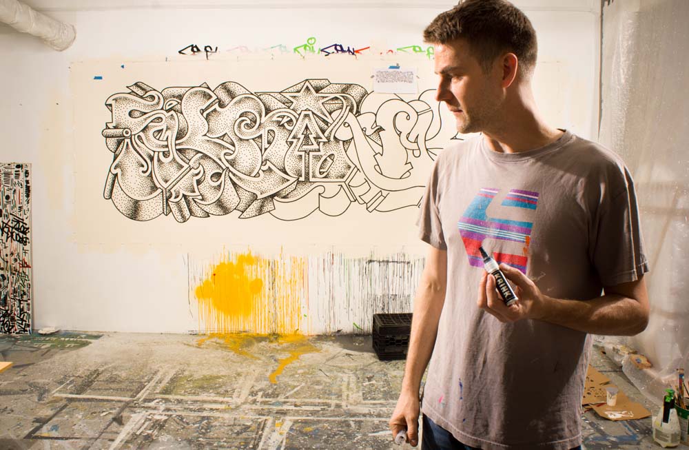 Ребята из компании KRINK пригласили к себе в студию Ноя McDonough'a, чтобы он сделал кусок в своем стиле на холсте 1,5 х 3,5м