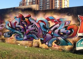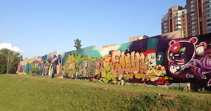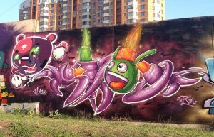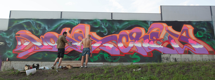 В субботу прошел этап международного граффити-джема, в котором приняли участие райтеры из разных городов России и два гостя из Берлина.