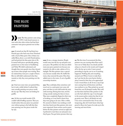 Как ясно из названия книга написанная шведским граффити-райтером Kaos, участником легендарных трейнрайтинг команд Moas, Vim, Msn и All.