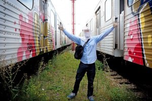 Пишем слово BLOOD ,на улице, баллоном ,именно красным!