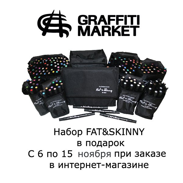 С 6 по 15 ноября в нашем в интернет - магазине при заказе от трех тысяч рублей в подарок набор из шести маркеров Fat&Skinny ассорти.