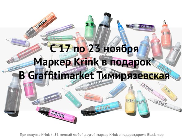 Купи маркер Krink K-51 желтый в Graffitimarket Тимирязевская и получи любой другой Krink в подарок (кроме Black Mop)