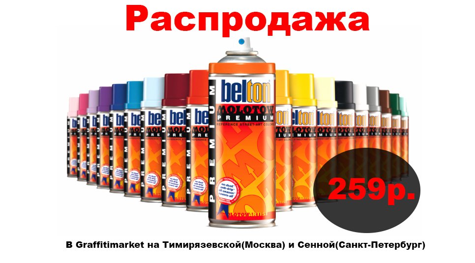 В наших магазинах на Тимирязевской(Москва) и Сенной площади(Санкт-Петербург) большая распродажа аэрозольной краски Molotow Premium Belton 400мл