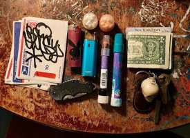 Смотрите фотографии из серии Run Your Pockets, в которой вы увидите содержимое карманов уличных художников