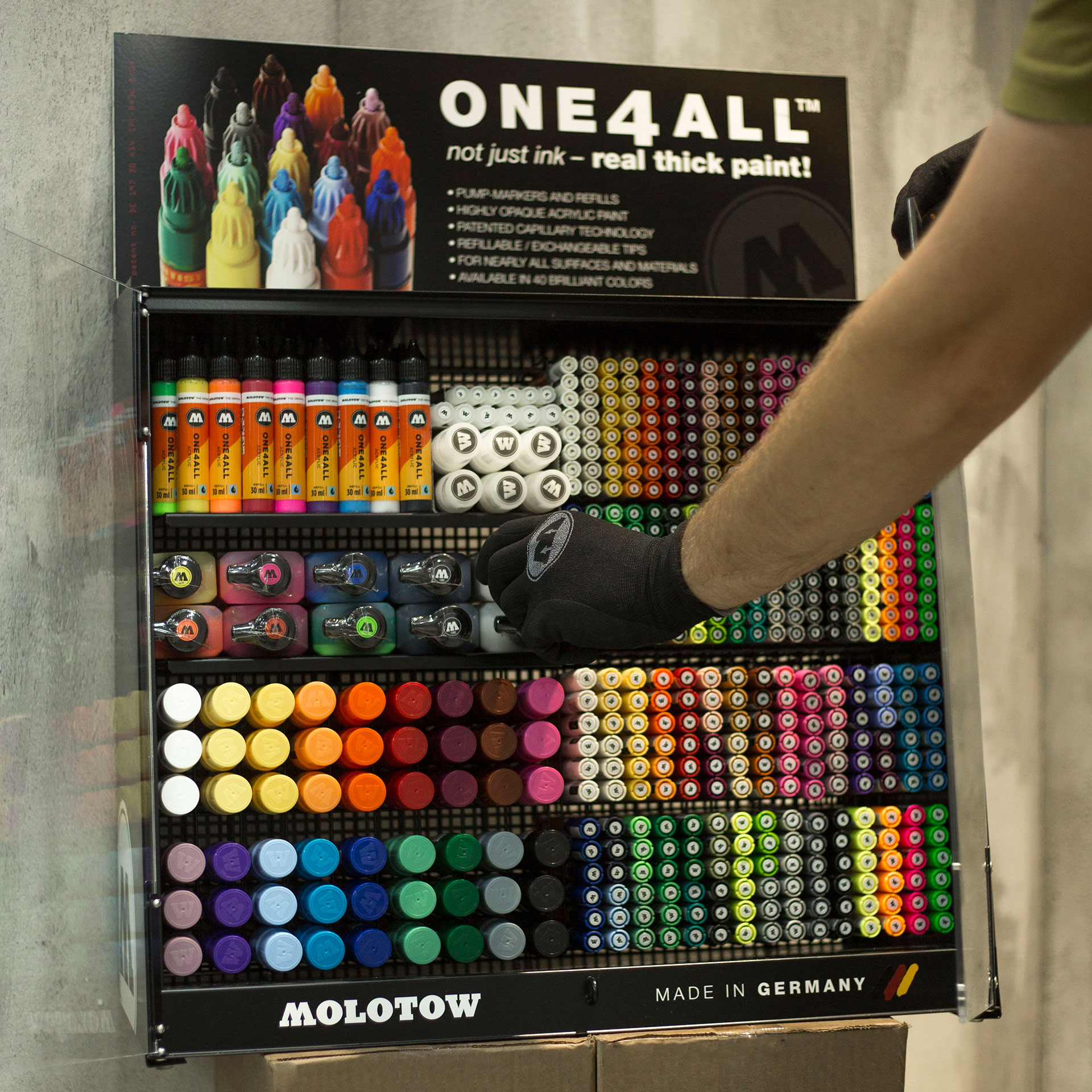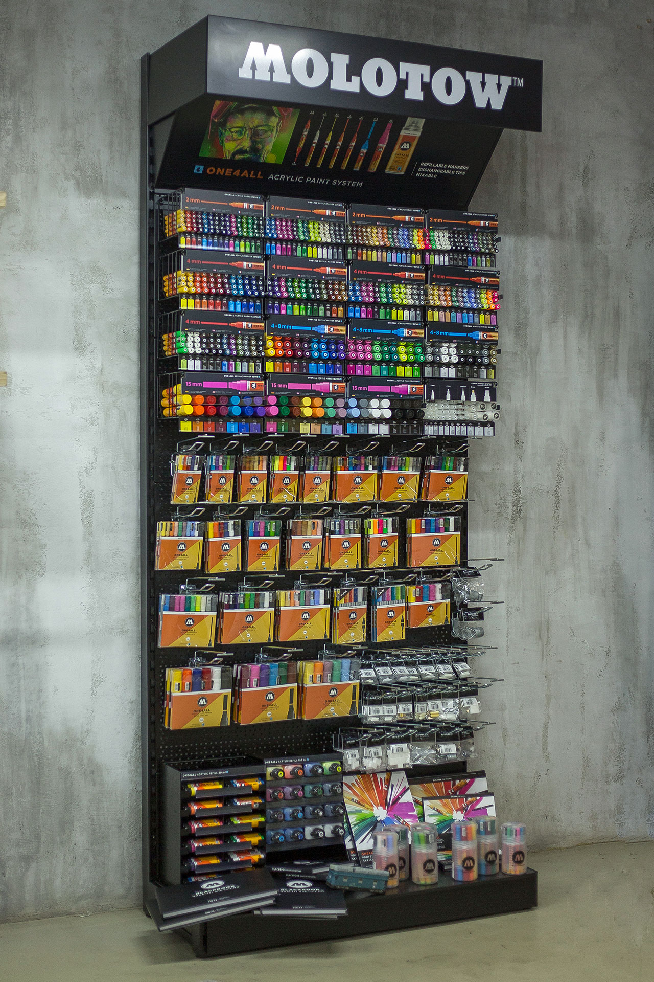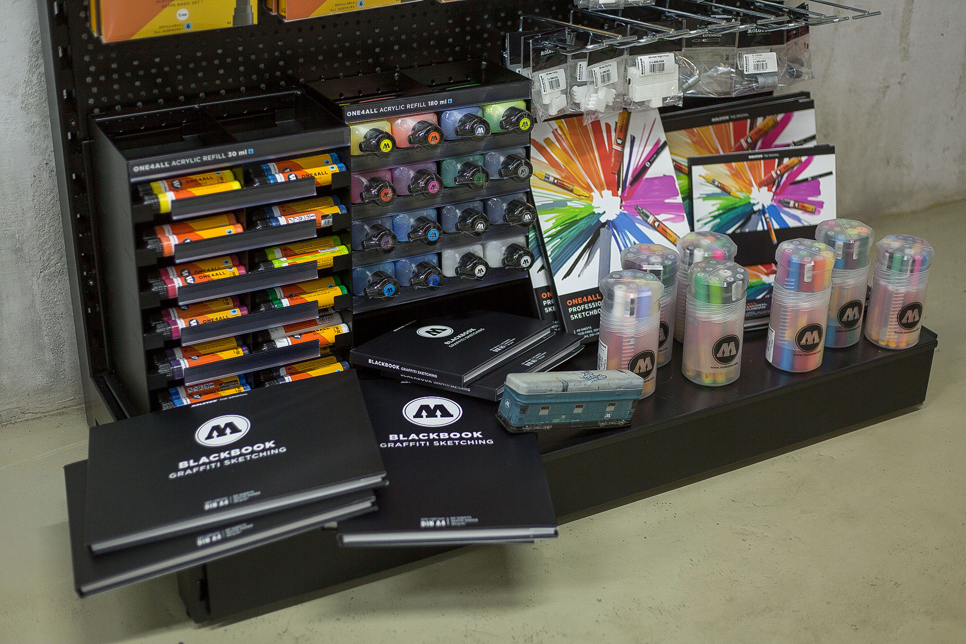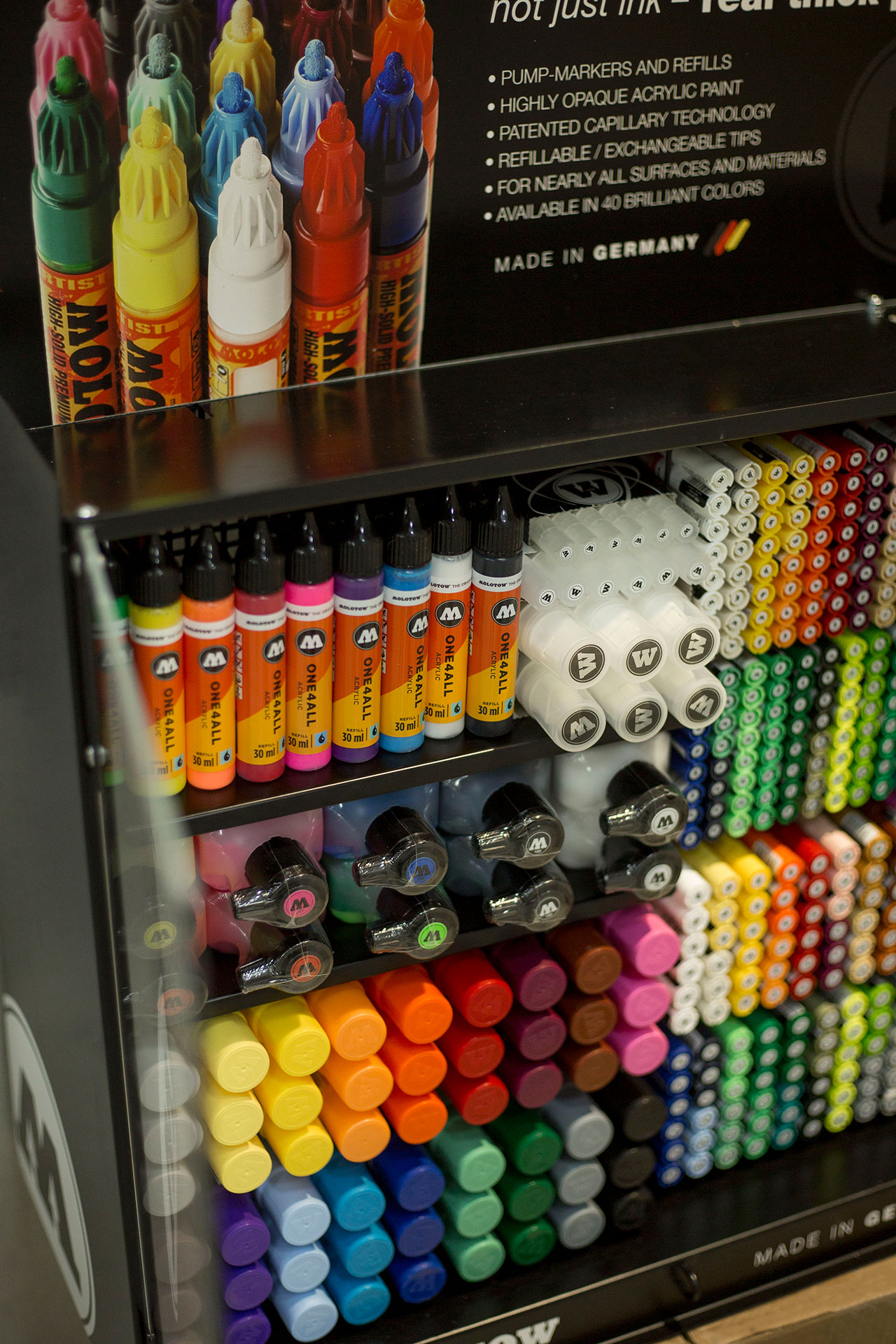 Мы рады анонсировать запуска проекта с фирменными стендами Molotow, адаптированными для рынка России. Теперь у каждого магазина в России есть возможность поставить у себя стенд.